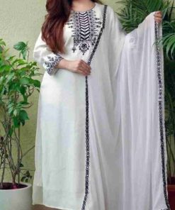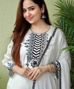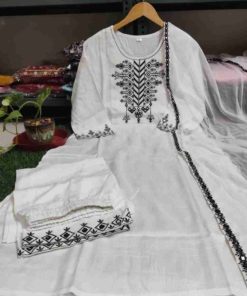 গলা হাতায় ও ওড়নায় এমবোটারি সুতার কাজ।