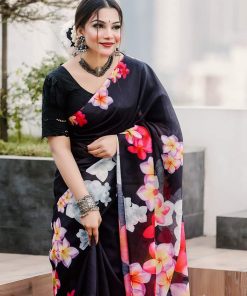 চান্দেরি সিল্ক কাঠ গোলাপ শাড়ি