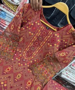 ♥বডির প্যানেল ও হাতায় টিস্যু কাপড়ে এমব্রয়ডারি কাজ করা, ফুল বডিতে বাড়ি স্টোন ও স্কিন প্রিন্ট করা 100%কালার গ্যারান্টি ।