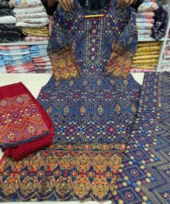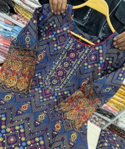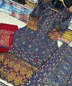 ♥বডির প্যানেল ও হাতায় টিস্যু কাপড়ে এমব্রয়ডারি কাজ করা, ফুল বডিতে বাড়ি স্টোন ও স্কিন প্রিন্ট করা 100%কালার গ্যারান্টি ।