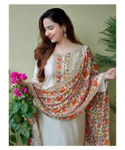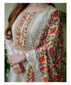 ♥গলা, ওড়নায় চারো সাইডে কোডিং সুতার কাজ করা।