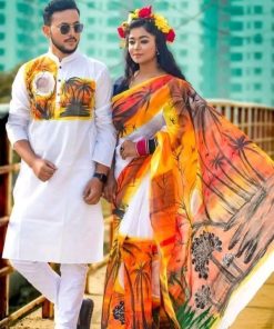 New Hand Printed Exclusive Design Combo Couple Set saree and panjabi for Men & Women